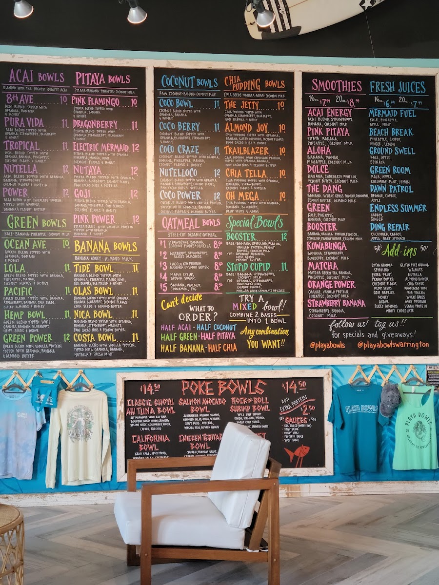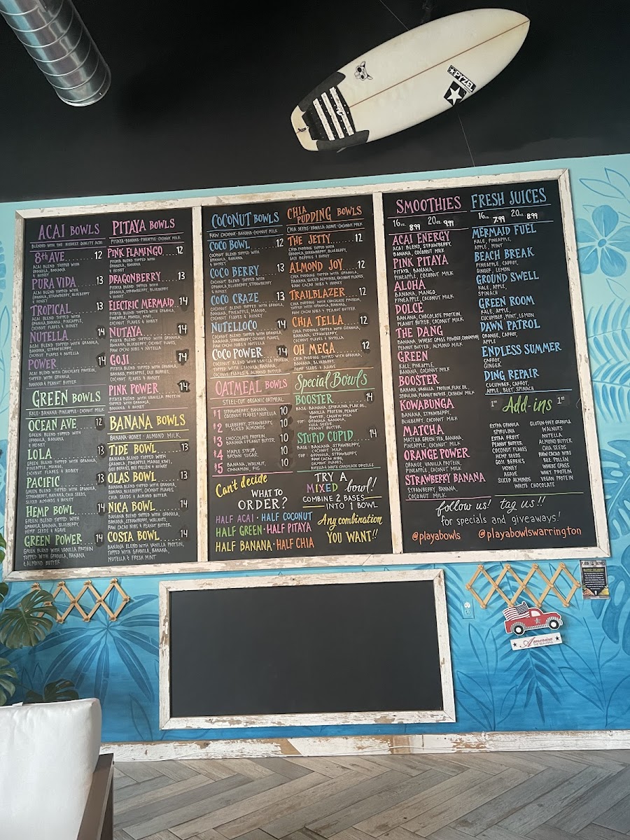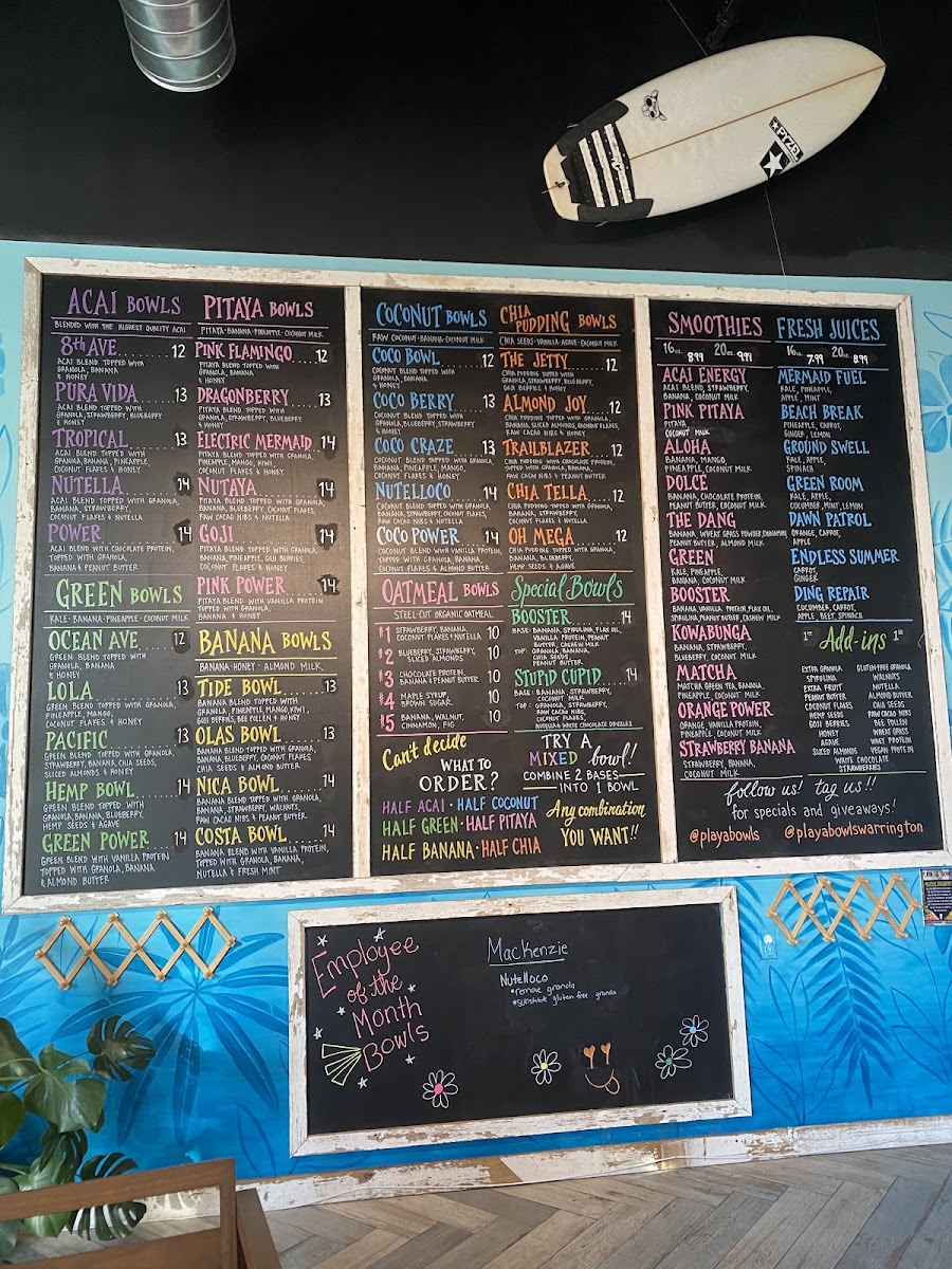 Playa Bowls in Warrington, PA offers a diverse and vibrant menu, perfect for any bowl enthusiast. The Mango Bowls stand out with options like the Custom Mango Bowl, Goldie Mango Bowl, and the tropical Mucho Mango Bowl, each crafted with fresh ingredients for a refreshing experience. For fans of acai, the Custom Acai Bowl and Nutella Bowl offer an indulgent, creamy base, while the Tropical Bowl provides a delightful mix of fruity flavors. If you're in the mood for something more exotic, the Pitaya Bowls, including the Pink Power Bowl and the tropical Electric Mermaid Bowl, deliver a burst of vibrant color and taste. The Banana Bowls such as the Costa Bowl and Tide Bowl bring in a comforting, sweet touch, with bananas as the main star.